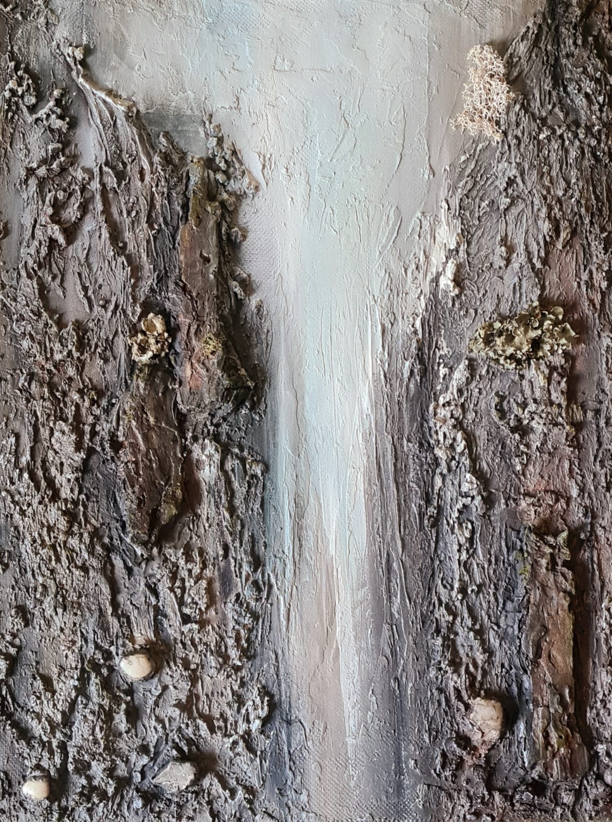 Холст на подрамнике лён, акрил, фактура (паста, кора дерева, камни, мох, лишайник)